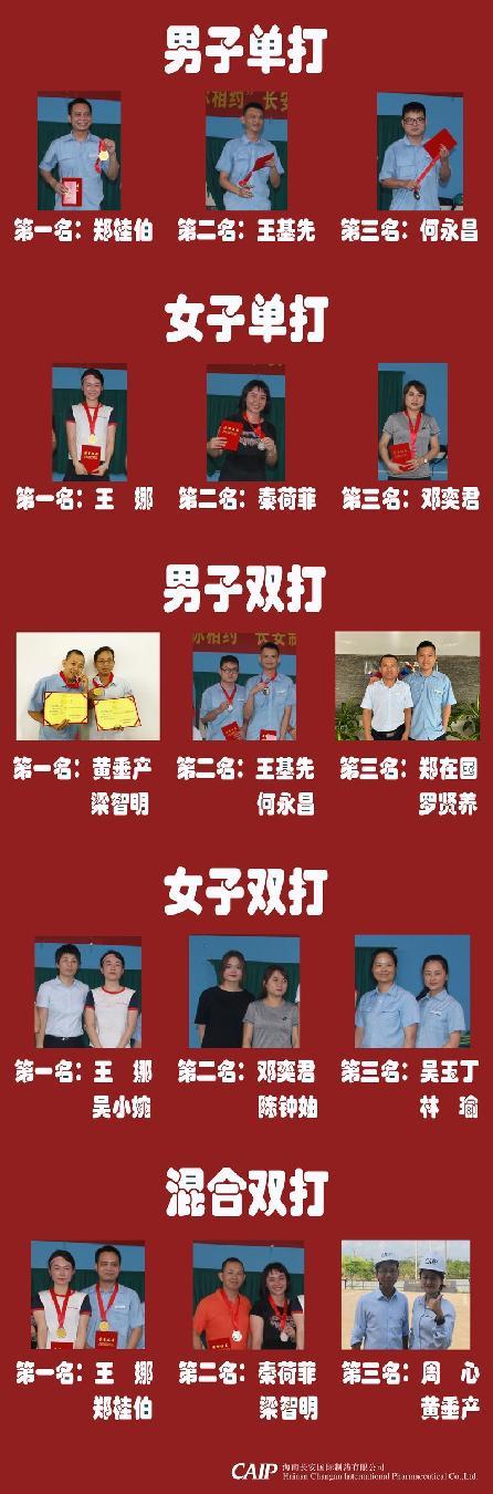 一份拼搏一份收獲,汗水會(huì)蒸發(fā),但榮譽(yù)不會(huì)褪色。“陽光長安•羽你相約”長安制藥2021春季羽毛球比賽已經(jīng)能落下帷幕,本次活動(dòng)不僅豐富了長安人的業(yè)余生活,也在員工之間、部門之間形成團(tuán)結(jié)友愛、溫馨互助的融洽氛圍,加強(qiáng)公司凝聚力的同時(shí),也促進(jìn)了長安人健身運(yùn)動(dòng)的蓬勃發(fā)展。
