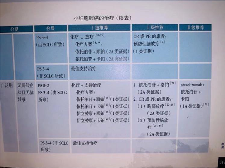 指南解析——順鉑(Cisplatin,DDP) 聯(lián)合依托泊苷(Etoposide,VP-16)組成的 EP 方案是近 30 年來循征醫(yī)學證據(jù)級別最高的一線標準治療方案。但是,由于 DDP 存在嚴重腎毒性、耳毒性、神經(jīng) 毒性、消化道毒性,以及與卡鉑(Carboplatin,CBP)高度交叉耐藥、治療誘導性耐藥等,常導致患者生存質量大大降低,甚至毒副反應不能耐受而中止治療等, 是嚴重制約 SCLC 療效的重要原因之一。因此,積極探索“與 DDP 同樣高效、 但低毒、不交叉耐藥”的新型鉑類藥物及其聯(lián)合化療方案,是進一步提高廣泛期 SCLC 療效的重要途徑之一。